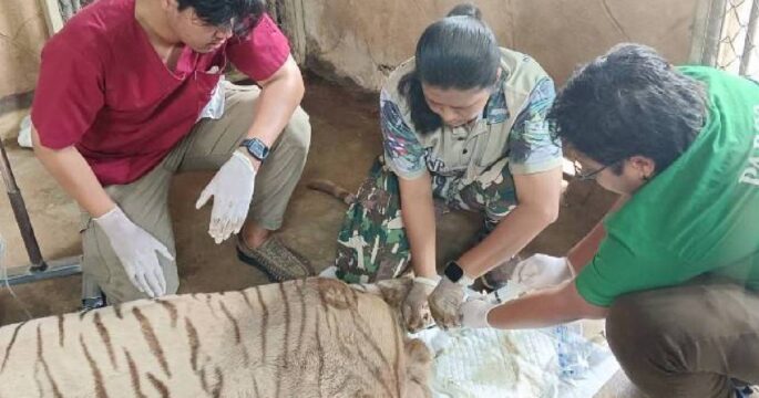 หมอกรมอุทยานฯ รักษาเสือโคร่งขาวบึงฉวากป่วยด้วยโรคระบบทางเดินอาหาร