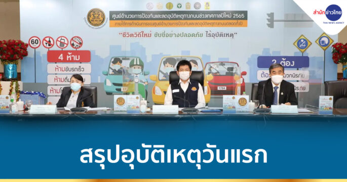 ศปถ.สรุปวันแรกของการรณรงค์ “ชีวิตวิถีใหม่ ขับขี่อย่างปลอดภัย ไร้อุบัติเหตุ” ในช่วงเทศกาลปีใหม่ 2565 พบอุบัติเหตุ 362 ครั้ง เสียชีวิต 39 ราย บาดเจ็บ 362 คน ขับรถเร็วเป็นสาเหตุหลักเกิดอุบัติเหตุสูง