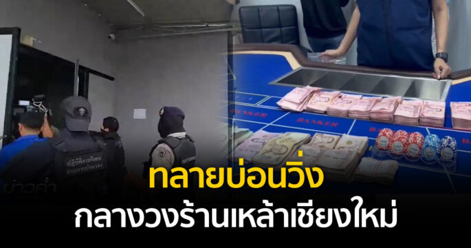เจ้าหน้าที่บุกทลายบ่อนวิ่งในรีสอร์ตที่เชียงใหม่ รวบนักพนัน 27 คน ยึดไพ่ 36 สำรับ โต๊ะบาคาร่า 1 ตัว ตู้สลอต 29 ตู้ พร้อมประสานแพทย์ตรวจเชื้อโควิด-19