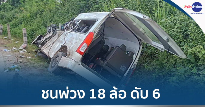 สลด! ทัวร์ 3 แผ่นดิน ประสบอุบัติเหตุระหว่างขากลับบ้าน รถพ่วง 18 ล้อ เสียหลักพุ่งอัดรถตู้นำเที่ยว คนขับชาวลาวและนักเที่ยวชาวไทย ตาย 6  เจ็บ 3