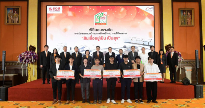 ธอส. ประกาศผู้ชนะการประกวดแบบบ้านประหยัดพลังงาน ภายใต้โครงการสินเชื่ออยู่เย็นเป็นสุข รับเงินรางวัลมูลค่ารวมมากกว่า 1 ล้านบาท พร้อมเปิดให้ลูกค้า ประชาชนดาวน์โหลดแบบบ้านฟรี เพื่อใช้ประกอบการปลูกสร้างและยื่นคำขอสินเชื่อกับ ธอส. ได้ต่อไป