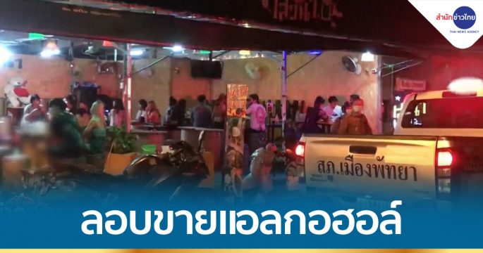 เจ้าหน้าที่ฝ่ายปกครอง และตำรวจเมืองพัทยา จับร้านอาหารลักลอบขายเครื่องดื่มแอลกอฮอล์ให้ลูกค้า เจ้าของหัวใส ชงเครื่องดื่มด้านหลังร้าน ก่อนเดินมาเสิร์ฟทีละแก้ว