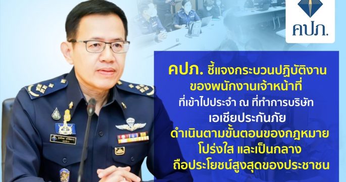 คปภ.ชี้แจงพนักงานเจ้าหน้าที่เข้าดูแลบริษัท เอเชียประกันภัย เพื่อเร่งจ่ายเคลมประกันภัยโควิด-19 ให้เป็นไปด้วยความรวดเร็ว ถูกต้อง