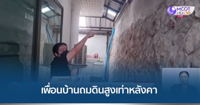 เจ้าของบ้านร่ำไห้ หมู่บ้านข้าง ๆ ที่ ต.บางเสร่ อ.สัตหีบ จ.ชลบุรี ถมดินสูงเท่าหลังคาบ้าน กำแพงร้าว น้ำทะลักเข้าบ้าน
