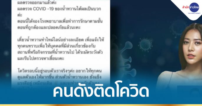 “น้ำหวาน รักษ์ณภัค” โพสต์อินสตาแกรมติดเชื้อโควิด-19 หลังร่วมงานปาร์ตี้ที่มีคนติดเชื้อ พร้อมขอโทษคนใกล้ชิด ด้านแมทธิว ดีน ต้องอยู่ในภาวะเสี่ยงอีกครั้งและต้องกักตัว เนื่องจากสัมผัสผู้ติดเชื้อที่ค่ายมวย