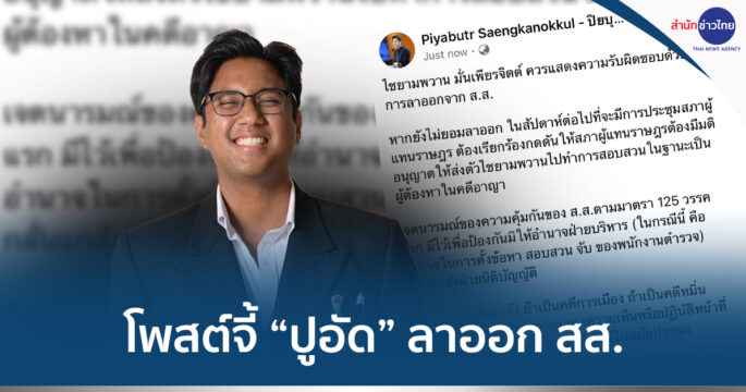 “ปิยบุตร” โพสต์จี้ “ปูอัด” ลาออก สส.