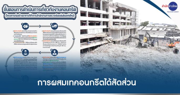 สตง. ย้ำผู้รับเหมา กิจการร่วมค้าไอทีดี-ซีอาร์อีซี ต้องทำตามกฎหมาย การผสมเทคอนกรีตได้สัดส่วนตามกำหนด มุ่งเป้าตัวอย่างลูกปูน ค่ากำลังอัดทรงกระบอก 380 ksc.