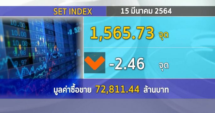 ตลาดหลักทรัพย์ปิดวันนี้ที่ระดับ 1,565.73 จุด ลดลง 2.46 จุด (-0.16%) มูลค่าการซื้อขาย 72,811.44 ล้านบาท ไร้ปัจจัยใหม่หนุนท่ามกลางรอผลประชุมเฟด