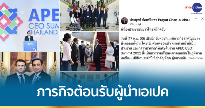 นายกฯ โพสต์เฟซบุ๊กภารกิจสำคัญต้อนรับผู้นำต่างประเทศร่วมประชุมเอเปค ย้ำได้รับประโยชน์รอบด้าน คาดเงินสะพัดในระบบเศรษฐกิจไทย 20,000 ล้านบาท