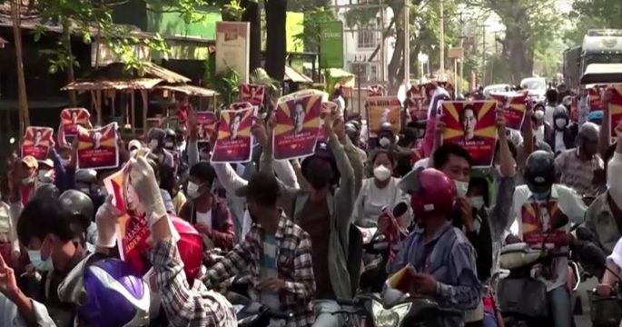 ย่างกุ้ง 22 ก.พ. – ผู้ประท้วงต่อต้านรัฐประหารในเมียนมาเรียกร้องให้มีการนัดหยุดงานทั่วไปและออกมาชุมนุมบนท้องถนนมากขึ้นในวันนี้ ขณะที่เจ้าหน้าที่เมียนมาขู่ว่า เหตุปะทะระหว่างทหารและผู้ประท้วงอาจทำให้มีผู้เสียชีวิต หลังมีผู้ประท้วงถูกยิงเสียชีวิต 2 รายในเมืองมัณฑะเลย์เมื่อวันเสาร์ที่ผ่านมา รัฐบาลทหารเมียนมาได้ส่งกำลังทหารลงพื้นที่มากขึ้นและสัญญาว่าจะจัดการเลือกตั้งครั้งใหม่ แต่ไม่สามารถยุติการประท้วงรายวันและขบวนการอารยะขัดขืนที่ยืดเยื้อมากว่า 2 สัปดาห์ เพื่อเรียกร้องให้รัฐบาลทหารสละอำนาจและปล่อยตัวนางออง ซาน ซู จี ผู้นำประเทศที่มาจากการเลือกตั้ง แกนนำนักเคลื่อนไหวเยาวชนเมียนมาโพสต์เฟซบุ๊กเมื่อคืนที่ผ่านมาว่า ใครที่ไม่กล้าออกมาร่วมประท้วงก็ขอให้อยู่ในบ้าน แต่เขาจะออกไปประท้วงให้ได้ และคาดว่าจะได้เห็นชาวเมียนมารุ่นใหม่ในการชุมนุมวันนี้ ทั้งนี้ ผู้ชุมนุมให้ความสำคัญกับการประท้วงในวันนี้ ซึ่งเป็นวันที่ 22.2.2021 โดยนำไปเปรียบเทียบกับคนรุ่นก่อนที่ชุมนุมประท้วงต่อต้านทหารเมื่อวันที่ 8.08.1988 จนเกิดเหตุปราบปรามนองเลือด รอยเตอร์ตั้งข้อสังเกตว่า การตอบโต้ของกองกำลังความมั่นคงเมียนมาในการประท้วงครั้งนี้มีความรุนแรงน้อยกว่าครั้งก่อน แต่ก็มีผู้ประท้วงเสียชีวิตแล้วอย่างน้อย 3 คน หลังจากที่มีผู้ประท้วง 2 คนถูกยิงเสียชีวิตในเมืองมัณฑะเลย์เมื่อวันเสาร์ที่ผ่านมา ขณะที่กองทัพระบุว่า มีตำรวจเสียชีวิต 1 นายหลังได้รับบาดเจ็บจากเหตุประท้วง ขณะที่สถานีโทรทัศน์เอ็มอาร์ทีวีของทางการเมียนมาประกาศเตือนว่า กลุ่มผู้ประท้วงกำลังยุยงประชาชนเมียนมาโดยเฉพาะวัยรุ่นและเยาวชนที่มีอารมณ์อ่อนไหวให้ก้าวไปในเส้นทางเผชิญหน้าที่อาจนำไปสู่การเสียชีวิต ด้านสมาคมช่วยเหลือนักโทษการเมืองของเมียนมาเผยว่า ขณะนี้มีผู้ประท้วงที่ถูกควบคุม ตั้งข้อหา หรือตัดสินลงโทษ 640 คน รวมถึงอดีตแกนนำรัฐบาลและผู้ประท้วงต่อต้านรัฐประหารนับตั้งแต่เกิดเหตุยึดอำนาจการปกครองเมื่อวันที่ 1 กุมภาพันธ์ที่ผ่านมา. -สำนักข่าวไทย
