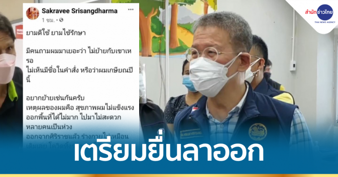 ผู้ว่าฯ สมุทรสาคร โพสต์เฟซบุ๊ก เตรียมยื่นหนังสือลาออกวันนี้ จากปัญหาสุขภาพ โอดขอย้ายจังหวัดไม่ได้ ลั่นสู้ไม่ไหวจริงๆ