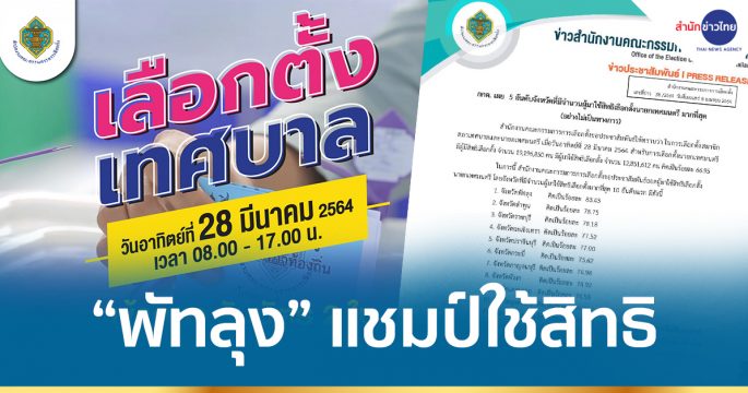 กกต. เผย 5 อันดับจังหวัดที่มีผู้ใช้สิทธิเลือกตั้งนายกเทศมนตรีมากที่สุด “พัทลุง” ชนะเลิศมากสุดร้อยละ 83.43 ยอดใช้สิทธิเลือกนายกเทศมนตรี ร้อยละ 66.95