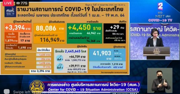ศบค.เผยผู้ติดเชื้อรายใหม่ 3,394 ราย เสียชีวิต 29 ราย กทม. ยังติดเชื้อมากสุดในประเทศ 876 ราย