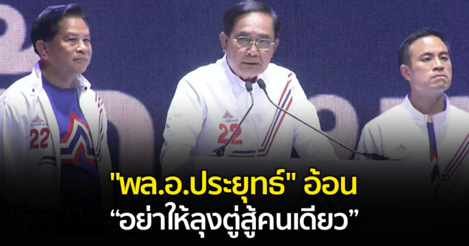 “พล.อ.ประยุทธ์” อ้อนรวมทุกหัวใจ ช่วยรักษาบ้านเมือง ชูแคมเปญ “อย่าให้ลุงตู่สู้คนเดียว” ขอคะแนนและขอโอกาสให้ “พล.อ.ประยุทธ์” ได้กลับมาเป็นนายกรัฐมนตรีอีกครั้ง