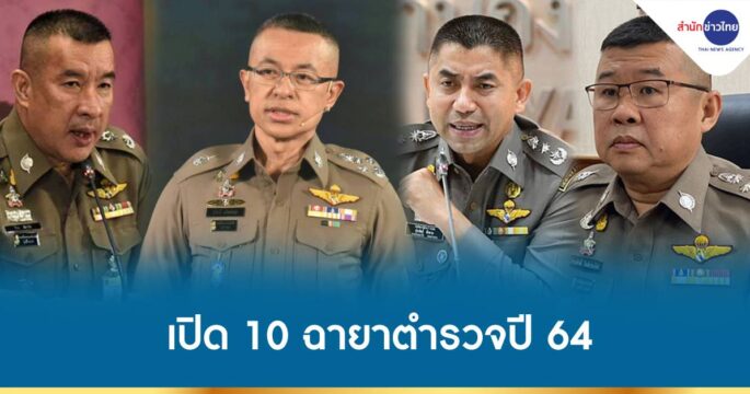 ฉายาตำรวจปี 2564 มี 10 นาย ผบ.ตร. ฉายา “หมอปั๊ด ตัดเนื้อร้าย”, พล.ต.อ.ดํารงศักดิ์ “เด่นชิงดำ”, พล.ต.ท.สุรเชษฐ์ “โจ๊ก บิ๊กคัมแบ็ก”, พล.ต.ท.ปิยะ ต๊ะวิชัย “มือปราบยานรก”, พล.ต.ท.จิรภพ ฉายา “จิรภพ ครบ เครื่อง”, พล.ต.ต.นพศิลป์ ฉายา “อาจารย์นพ จบทุกจ็อบ”