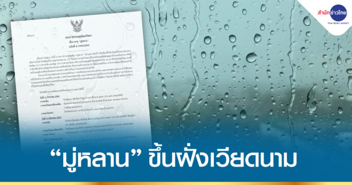 กรมอุตุฯ ประกาศฉบับที่ 8 “พายุมู่หลาน” เคลื่อนขึ้นฝั่งเวียดนามแล้ว ส่งผลให้ไทยมีฝนตกหนักถึงหนักมากบางแห่งในภาคเหนือ ภาคอีสาน และภาคตะวันออก ช่วงวันที่ 11-13 ส.ค.นี้