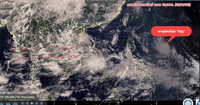 ผู้อำนวยการสถาบันสารสนเทศทรัพยากรน้ำติดตามการพัฒนาตัวและทิศทางของพายุโซนร้อน “โนรู” จากหลายแบบจำลอง คาดว่า จะเคลื่อนขึ้นฝั่งที่ประเทศเวียดนาม 27-28 ก.ย. แล้วมีแนวโน้มเคลื่อนเข้ามาสู่ประเทศไทยที่จ. มุกดาหารหรือรอยต่ออุบลราชธานี หากเข้ามา จะเคลื่อนที่ผ่านภาคตะวันออกเฉียงเหนือตอนล่าง ภาคกลาง ส่งผลให้มีฝนเพิ่มขึ้นในลุ่มน้ำชี-มูล เจ้าพระยา และป่าสัก