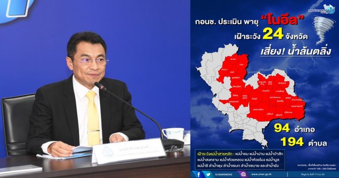 กอนช.ยกระดับติดตามสถานการณ์ 24 ชั่วโมง เกาะติดเส้นทางพายุโซนร้อนโนอึล เฝ้าระวังน้ำล้นตลิ่ง 24 จังหวัดเหนือ-อีสาน