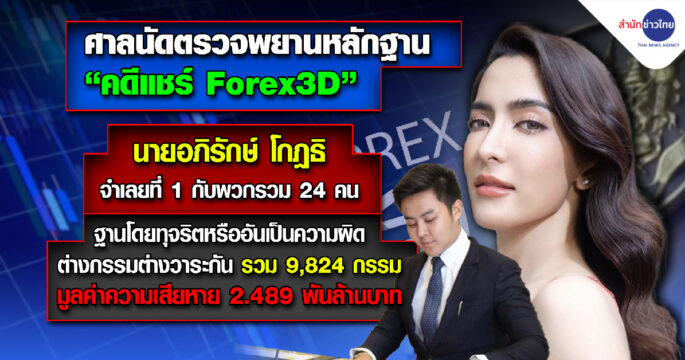 ศาลเลื่อนตรวจพยานหลักฐาน-สอบคำให้การ “พิ้งกี้” นักแสดงชื่อดัง แม่ พี่ชาย รวมทั้ง “อภิรักษ์” ผู้บริหาร Forex-3D กับพวก คดี Forex-3D เป็น 29 พ.ย.นี้ เหตุเอกสารในคดีจำนวนมากต้องตรวจสอบให้ละเอียด ส่วนดาราสาวมาในชุดผู้ต้องขังตัดผมสั้น ยังยิ้มสู้ ชูมือสัญลักษณ์โอเค