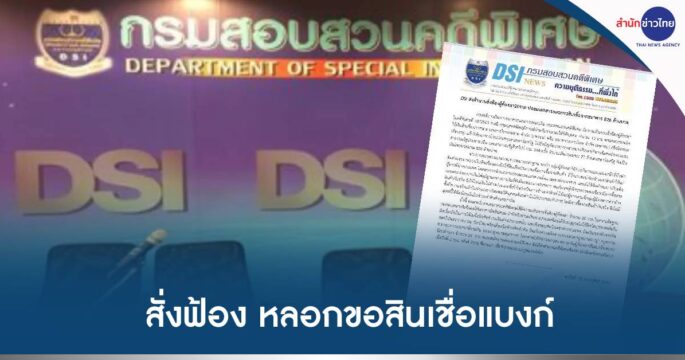 กรมสอบสวนคดีพิเศษ (DSI) ส่งสำนวนสั่งฟ้องผู้ต้องหา 20 ราย ปลอมเอกสารหลอกขอสินเชื่อจากธนาคาร 826 ล้านบาท