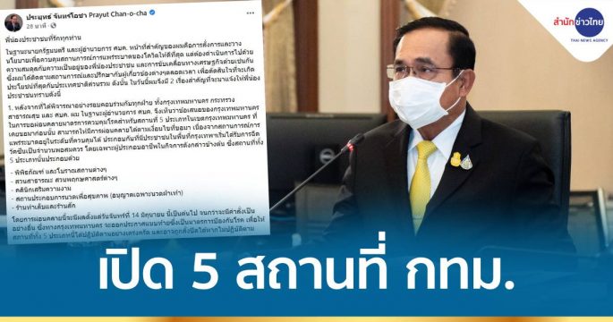 นายกฯ โพสต์เฟซบุ๊ก 14 มิ.ย.นี้ ผ่อนคลายมาตรการสถานที่ 5 ประเภท กรุงเทพมหานคร เปิดได้ปกติ พร้อมเปิดภูเก็ตรับนักท่องเที่ยวแบบไม่ต้องกักตัว 1 ก.ค.นี้