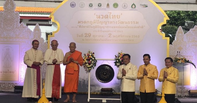วัดโพธิ์ 29 ต.ค.-“อนุทิน-อิทธิพล” ร่วมเปิดงานฉลองนวดไทยมรดกภูมิปัญญาทางวัฒนธรรมและงานสัปดาห์วันภูมิปัญญาการแพทย์แผนไทยแห่งชาติ นายอนุทิน ชาญวีรกูล รองนายกรัฐมนตรีและรัฐมนตรีว่าการกระทรวงสาธารณสุข พร้อมด้วยนายอิทธิพล คุณปลื้ม รัฐมนตรีว่าการกระทรวงวัฒนธรรม เปิดงานฉลองนวดไทยมรดกภูมิปัญญาทางวัฒนธรรมและงานสัปดาห์วันภูมิปัญญาการแพทย์แผนไทยแห่งชาติเพื่อเฉลิมฉลองในวาระที่ยูเนสโกประกาศรับรองขึ้นทะเบียนนวดไทยเป็นมรดกภูมิปัญญาทางวัฒนธรรมที่จับต้องไม่ได้ของมนุษยชาติ ในวันที่12ธันวาคม 2562 โดยการจัดงานนี้จะมีขึ้นตั้งแต่วันที่ 29 ตุลาคมไปจนถึงวันที่ 2 พฤศจิกายน 2563 โดยงานนี้ได้รับเกียรติจากพระคาร์ดินัลไมเกิ้ล มีชัย กิจบุญชู และอาร์บิขอป พอล ชาง อิน-นัม เอกอัครพระสมณทูตนครรัฐวาติกันประจำประเทศไทย ร่วมงาน โดยงานมีการจัดแสดงนิทรรศการสดุดีพระบิดาแห่งการแพทย์แผนไทย โซนศาสตร์นวดไทยสืบสานมรดกโลกและโซนการแสดงทั่วโลก ยลวิจิตรศิลปวัฒนธรรมและภูมิปัญญาไทยและศูนย์จำหน่ายสินค้าสมุนไพรไทยยาแก้สรรพโรครวมถึงการกินอย่างไรให้เป็นยา ซึ่งได้รับความสนใจจากประชาชนและนักท่องเที่ยวที่เข้ามาร่วมชมภายในงาน นายอนุทิน กล่าวว่า ศาสตร์แผนไทย เป็นมรดกตกทอดมาหลายชั่วอายุคน โดยโรงเรียนแพทย์วัดโพธิ์เป็นโรงเรียนแพทย์แผนไทยแรกที่เผยแพร่ความรู้อย่างเผื่อแผ่ ให้ประชาชน. โดยในอนาคตการตั้งใจพัฒนาการแพทย์แผนไทยให้เป็นที่ยอมรับในสายตาของประชาชนทั่วไปแล้วนานาชาติ ขณะนี้นำผลิตภัณฑ์สมุนไพรไทยมาปรับเปลี่ยนรูปลักษณ์ บรรจุภัณฑ์ใหม่ทำให้น่าสนใจ ซื้อหา.-สำนักข่าวไทย
