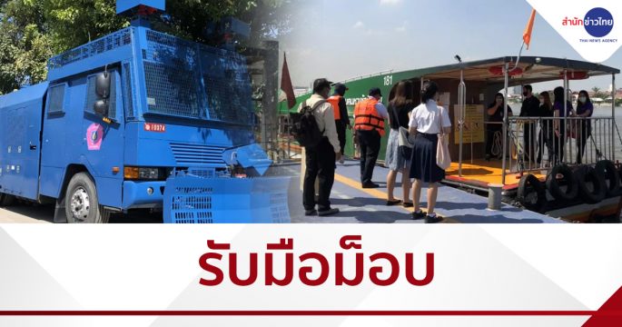 ท่าเรือเกียกกาย ยังคงให้บริการปกติ หลังกลุ่มราษฎรประกาศจะล่องเรือเป็ดมาชุมนุม ด้านเจ้าหน้าที่จัดเต็มทั้งกำลังพล รถฉีดน้ำแรงดันสูง แผงเหล็ก แล