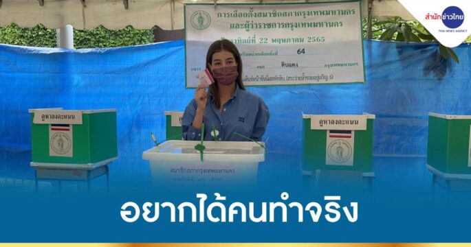 “มิ้นต์ ชาลิดา” เข้าคูหาร่วมใช้สิทธิเลือกตั้งผู้ว่าฯ กทม. อยากได้ผู้ว่าฯ กทม. ที่ลงมือทำจริงและพัฒนาประเทศ ทำจริงตามนโยบายที่หาเสียง