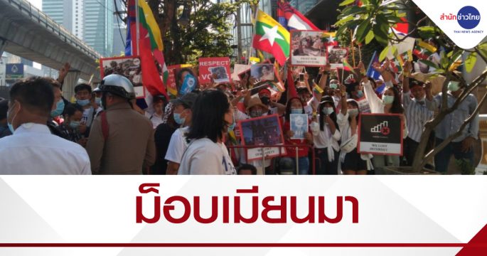 ม็อบต้านรัฐประหารรวมตัวหน้าสถานทูตเมียนมาฯ