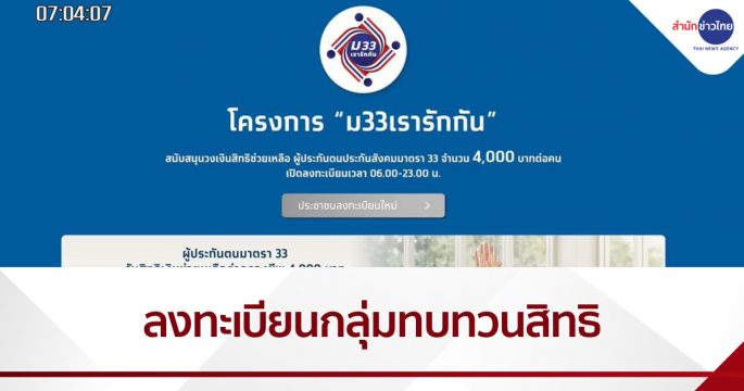 อย่าลืม! กลุ่มทบทวนสิทธิ พรุ่งนี้เปิดลงทะเบียน “ม.33 เรารักกัน” รับเงินเยียวยา 4,000 บาท ยืนยันตัวตนผ่านแอปฯ วันแรก