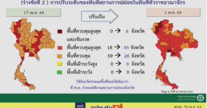 ศบค.ชุดใหญ่ มีมติยกระดับมาตรการคุมเข้มโควิด-19 เคาะ 6 จังหวัดเป็นสีแดงเข้ม ขอ WORK FROM HOME 14 วัน มีผล 1 พ.ค.นี้