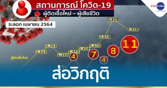 โควิด-19 วิกฤติต่อเนื่อง ยอดเสียชีวิตเฉพาะวันนี้ 11 คน พบผู้ติดเชื้อรายใหม่เพิ่มอีก 2,438 คน ทำให้ยอดผู้ติดเชื้อสะสม 55,460 คน
