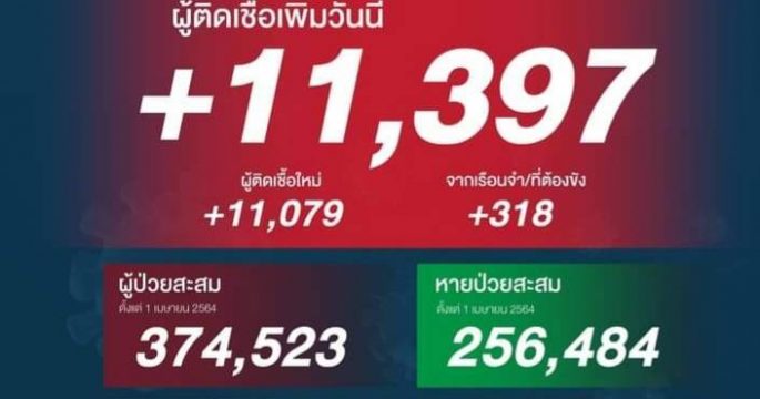 ยอดโควิดทุบสถิติอีก ติดเชื้อเพิ่ม 11,397 ราย เสียชีวิต 101 ราย