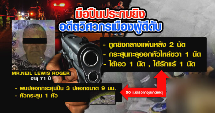 มือปืนประกบกระหน่ำยิงโหดสังหาร อดีตวิศวกรชาวอังกฤษ ดับคาที่ ตำรวจเร่งคลี่คลายปมสังหาร หลังพบว่าเพิ่งจะเดินทางเข้าประเทศไทยได้เพียงวันเดียว