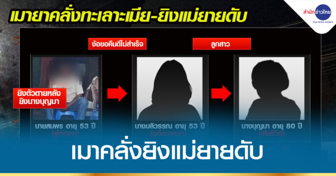 ลูกเขยแค้นจัด ยิงแม่ยายเสียชีวิต เหตุไม่ยอมบอกเบอร์โทรศัพท์และที่อยู่ของภรรยา ซึ่งทะเลาะกันแล้วหนีออกจากบ้าน สุดท้ายทนแรงกดดันไม่ไหว ติดต่อขอมอบตัว