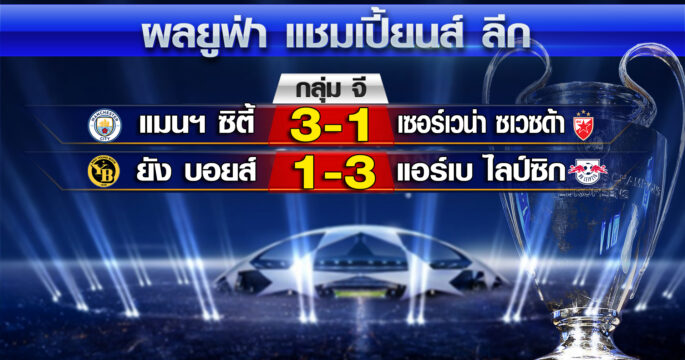 แมนฯ ซิตี้ แซงชนะ เซอร์เวน่า ซเวซด้า 3-1 ศึกยูฟ่า แชมเปียนส์ ลีก