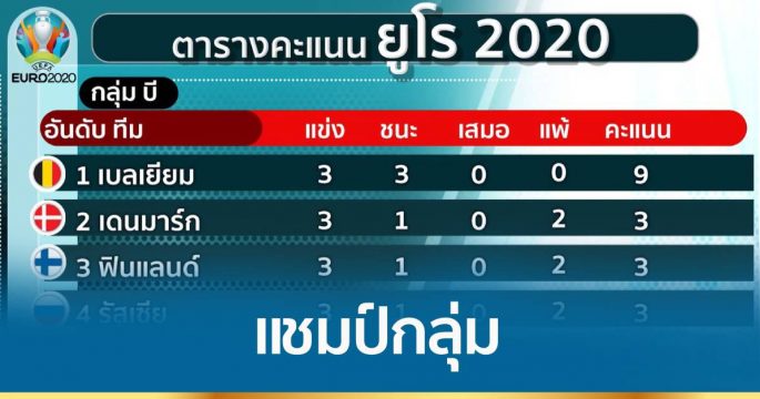 เบลเยียม และเนเธอร์แลนด์ คว้าแชมป์กลุ่ม เก็บชัยชนะรวดทั้ง 3 นัด ผ่านเข้ารอบ 16 ทีมสุดท้าย บอลยูโร 2020