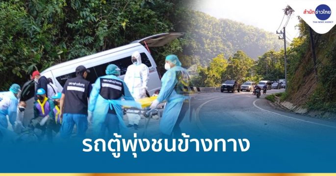 รถตู้นำเที่ยวจากสมุทรปราการ ขับลงดอยอ่างขาง เสียหลักพุ่งชนข้างทาง เสียชีวิต 1 ราย บาดเจ็บอีก 8 คน