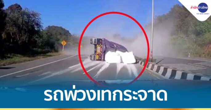 ระทึก! รถพ่วงเทกระจาด ช่วงทางโค้งบ้านห้วยปลาหลด