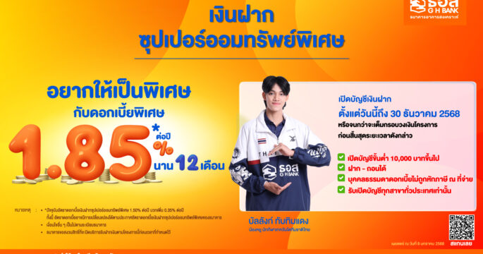 ธอส.เอาใจคนรักการออม เปิดบัญชีเงินฝาก “ซุปเปอร์ออมทรัพย์พิเศษ” ตั้งแต่วันนี้ถึงวันที่ 30 ธันวาคม 2568 รับอัตราดอกเบี้ยสูงถึง 1.85% ต่อปี นาน 12 เดือน