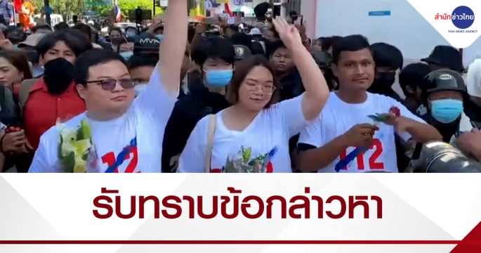 “เพนกวิน-รุ้ง-ไมค์” แกนนำกลุ่มราษฎร เข้ารับทราบข้อกล่าวหาตามหมายเรียกคดีมาตรา 112 ที่ สภ.เมืองนนทบุรี