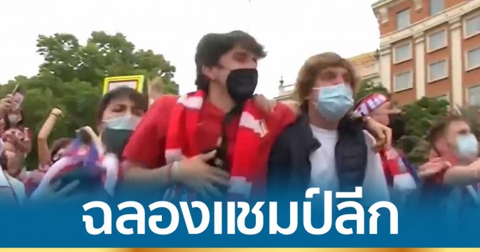 แฟนบอลของแอตเลติโก มาดริด เฉลิมฉลองแชมป์ลีกบริเวณจัตุรัสเนปจูน ใจกลางกรุงมาดริด หลังจากนักเตะแอตฯ มาดริด เฉือนชนะ เรอัล บายาโดลิด คว้าแชมป์ลา ลีกา สเปน สมัยที่ 11