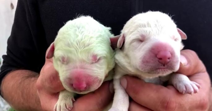 ลูกหมาอิตาลีเกิดมามีขนสีเขียว
