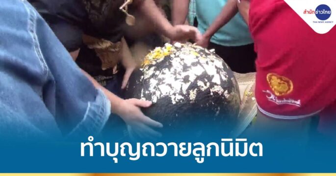 บุญหนัก! ถวายลูกนิมิตสร้างอุโบสถ ใช้ 5 คนยก