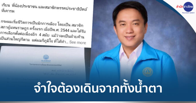 “ศิริโชค” โพสต์ไขก๊อกสมาชิก ปชป. บอกจำใจต้องเดินจาก ทั้งน้ำตา แม้จะอาลัยอาวรณ์ หวังจะกลับมายิ่งใหญ่พร้อมอุดมการณ์ที่มั่นคงเป็นที่พึ่งประชาชน