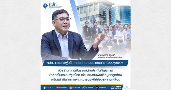 คปภ. และสภาผู้บริโภค ร่วมทบทวนมาตรการ Copayment พร้อมลงดาบตัวแทนประกันทำให้ผู้บริโภคเข้าใจผิด ย้ำต้องไม่กระทบผู้บริโภค พร้อมดำเนินคดีต่อผู้ให้ข้อมูลคลาดเคลื่อน