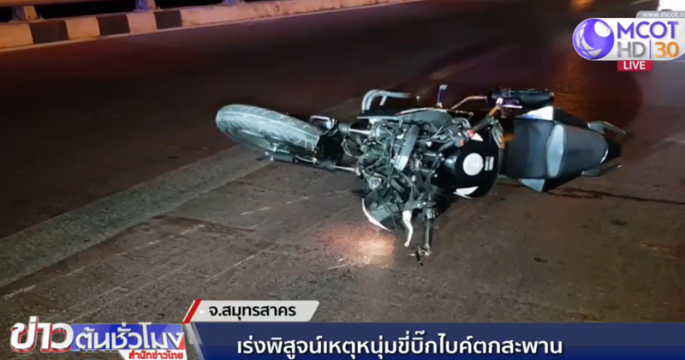 ตำรวจเร่งตรวจสอบกล้องวงจรปิดและพิสูจน์อัตลักษณ์ชายขี่บิ๊กไบค์ชนราวสะพานต่างระดับ ถ.เอกชัย อ.เมืองสมุทรสาคร ตกลงมาบน ถ.พระราม 2 เสียชีวิต