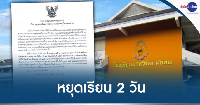 โรงเรียนราชวินิตมัธยม ประกาศหยุดการเรียนการสอนด้วยเหตุพิเศษ 2 วัน วันที่ 26-27 มิ.ย.66 เพื่อแสดงความเสียใจกับนักเรียน ผู้ปกครอง พร้อมเยียวยาสภาพจิตใจนักเรียน
