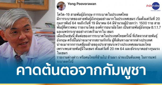 สธ.25 พ.ค.-สธ.ตรวจสายพันธุ์เชื้อโควิดได้มากกว่า 380 ตัวอย่างต่อสัปดาห์ ผลสุ่มตรวจตั้งแต่การระบาดรอบเมษายน 1,300 ตัวอย่าง พบร้อยละ 93 เป็นสายพันธุ์อังกฤษ วัคซีนยังป้องกันได้ ส่วนสายพันธุ์แอฟริกาใต้ยังอยู่ในพื้นที่ อ.ตากใบ จำกัดวงไม่ให้แพร่กระจายต่อ ขอทุกคนฉีดวัคซีนสร้างภูมิคุ้มกันหมู่คงมาตรการป้องกันโรค ลดโอกาสกลายพันธุ์ในประเทศ วันนี้ (25 พ.ค.) นพ.ศุภกิจ ศิริลักษณ์ อธิบดีกรมวิทยาศาสตร์การแพทย์ กล่าวถึงเชื้อโควิด 19 กลายพันธุ์ ว่า ตามธรรมชาติของเชื้อไวรัสโควิด 19 มีการกลายพันธุ์ตลอดเวลา หากมีการแพร่เชื้อมากขึ้น โอกาสเกิดการกลายพันธุ์ได้มากขึ้น ซึ่งการเฝ้าระวังมี 2 ระดับ คือ 1.ระดับที่น่าสนใจ (Variant of Interest) ที่ต้องติดตามกันต่อ และ 2.ระดับที่น่าห่วงกังวล (Variant of Concern) เช่น สายพันธุ์อังกฤษ อินเดีย บราซิล แอฟริกาใต้ แคลิฟอร์เนีย เป็นต้น โดยประเทศไทยมีเครือข่ายห้องปฏิบัติการในการสุ่มตรวจเพื่อเฝ้าระวังสายพันธุ์ต่างๆ โดยเฉพาะเมื่อเกิดคลัสเตอร์ใหม่, พื้นที่ชายแดน, […]