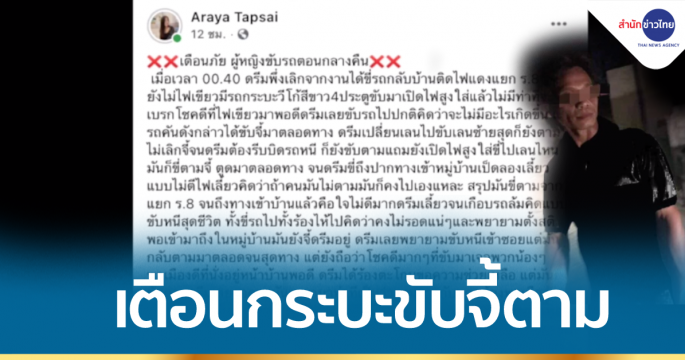 สาวขอนแก่นโพสต์เฟซบุ๊กเตือนภัย หลังขี่รถจักรยานยนต์เดินทางกลับบ้านกลางดึก ถูกชายขับกระบะสีขาวจี้ตูดตามโดยไม่รู้จุดประสงค์ โชคดีที่พลเมืองดีในหมู่บ้านช่วยไว้ได้ทัน